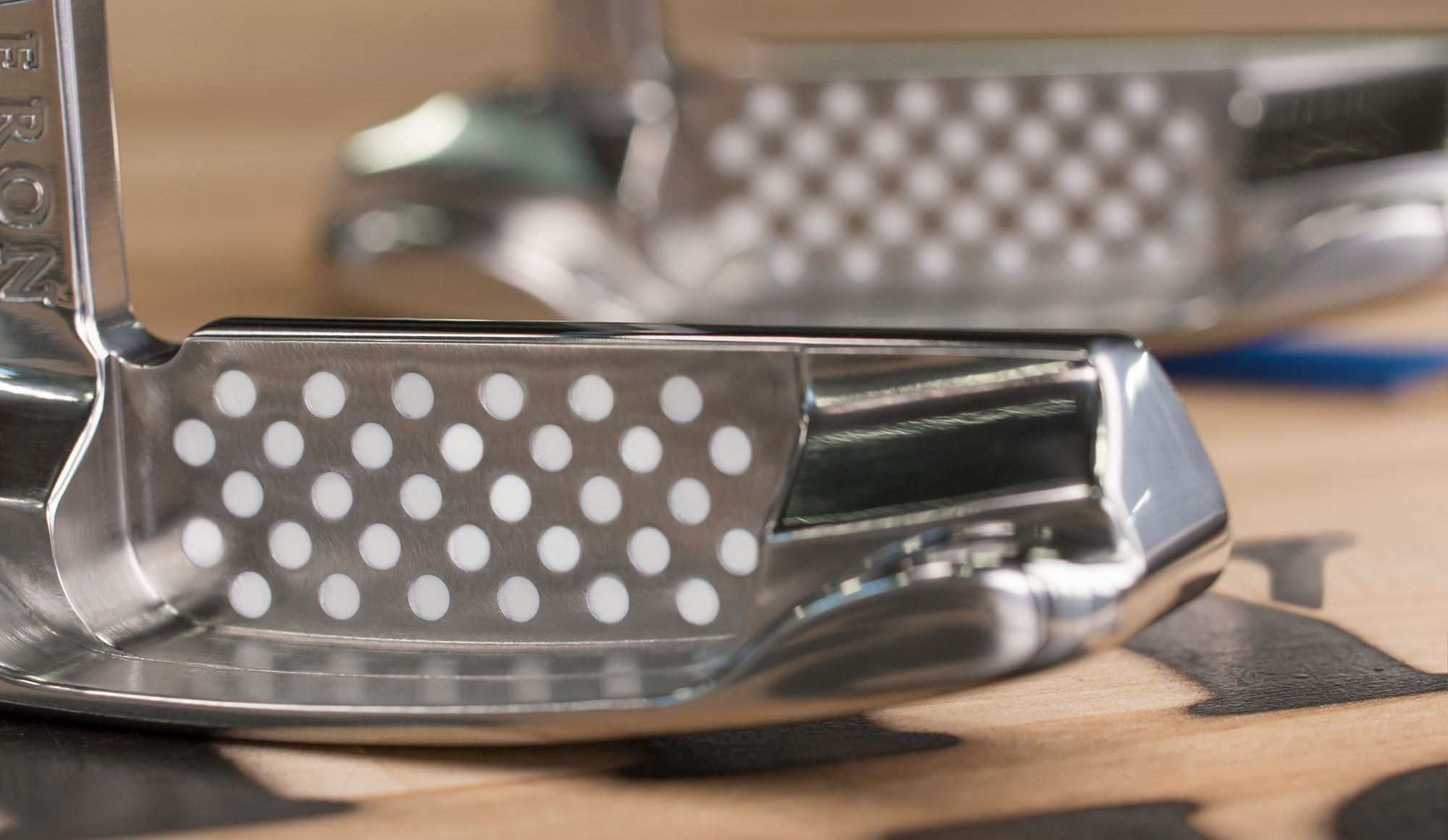 Restoration involves stripping the putter's finish, removing scratches, dents and dings from the putter head, re-milling the face, applying a restored finish and giving it fresh paintfill, either original or custom per the player's wishes.