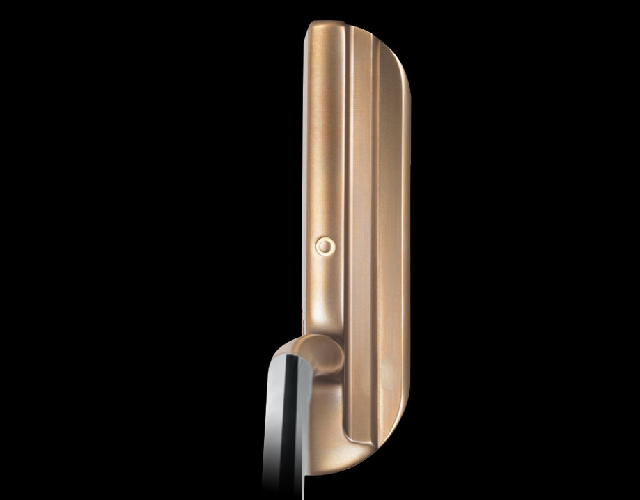 A pintail with performance in its sole. The two-tiered flange contours flow back into a pulled-in heel Scotty calls a pintail. From address, squint slightly and let your mind create the outline of a 1960s-era balsa surfboard and you’ll see. This blade design appeals to the putting purist who demands a melt-into-the green putter with spot-on balance and handling. An engraved circle sight dot on the topline—accessorized in rich French vanilla paintfill—helps with alignment as the eye glides down the smooth round neck. The honey-dipped finish instills confidence in lifes good things, like making your next six-foot putt. A fine craft for a fine pursuit.