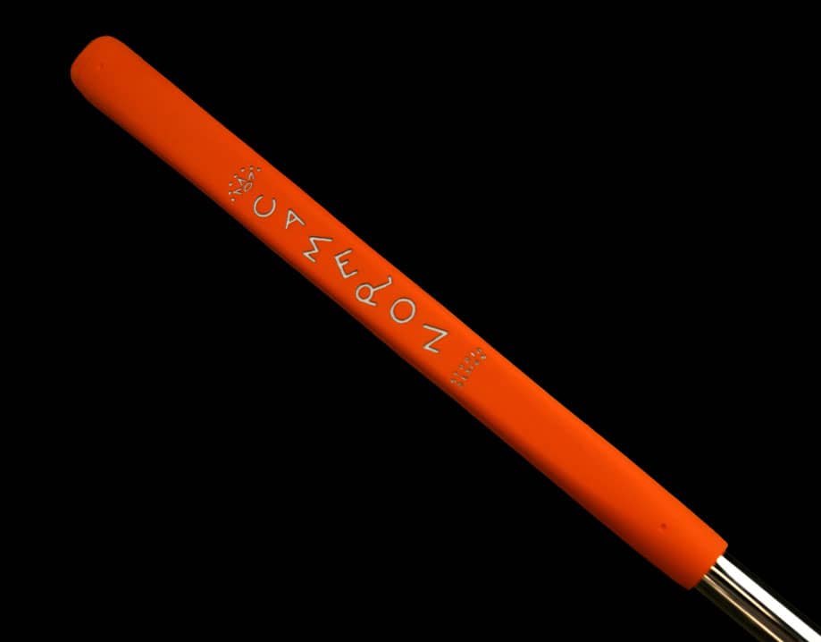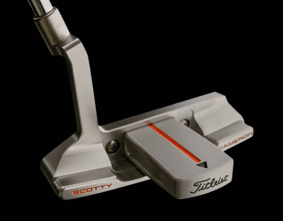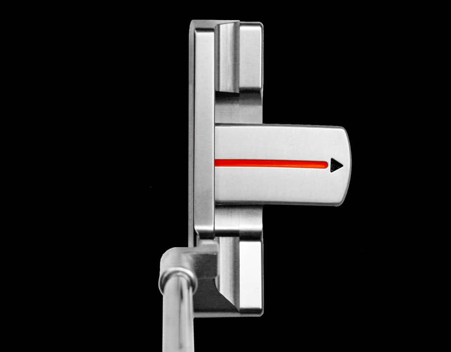 Scotty gave the topline a 2-degree high toe to make it more pleasing to the eye at the address position. The putter’s curved profile with its extended orange sightline, which is straight for the first inch and curves thereafter, shows the player the proper path. A removable stainless steel backweight allows a single putter head to work with varying shaft lengths based on player preference. The backweight also triangulates balance for high MOI weight distribution and an increased sweet spot area that accounts for off-center putts. A vibration-dampening elastomer cushion surrounds the aluminum face for extremely soft feel and sound. The stepless shaft offers a clean look at address, as well as positive feel and feedback. This putter line comes with the orange Studio Design grip matched to an orange shaftband and an orange headcover.