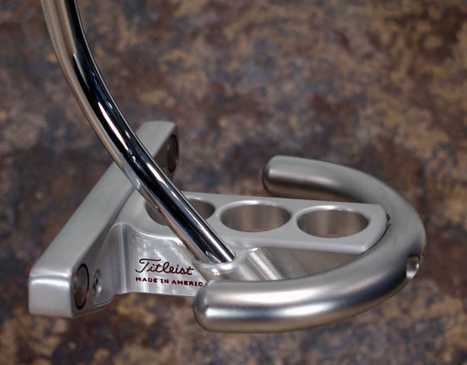 The Futura was in the prototype stage for years before it made its way into production. The Futura has a unique weight distribution with 75% of the weight being in the stainless “horseshoe” and 25% being in the face and body. This combination of balance allows the Futura to perform like no other putter we had ever tested. The ball rolls immediately off the face of the putter without ever digging into the green. The sole was designed so the putter never closes when setting up to the ball and the top-line is shaped for a contoured look. In late 2003, two sightlines were added to the top flange of the body for better visuals and ease of alignment. Finally, two plugs have been milled into the back of the face and stainless weights have been applied to create even more stability and give the putter that solid sound and feel. The Futura had its first win on the PGA Tour in 2003.